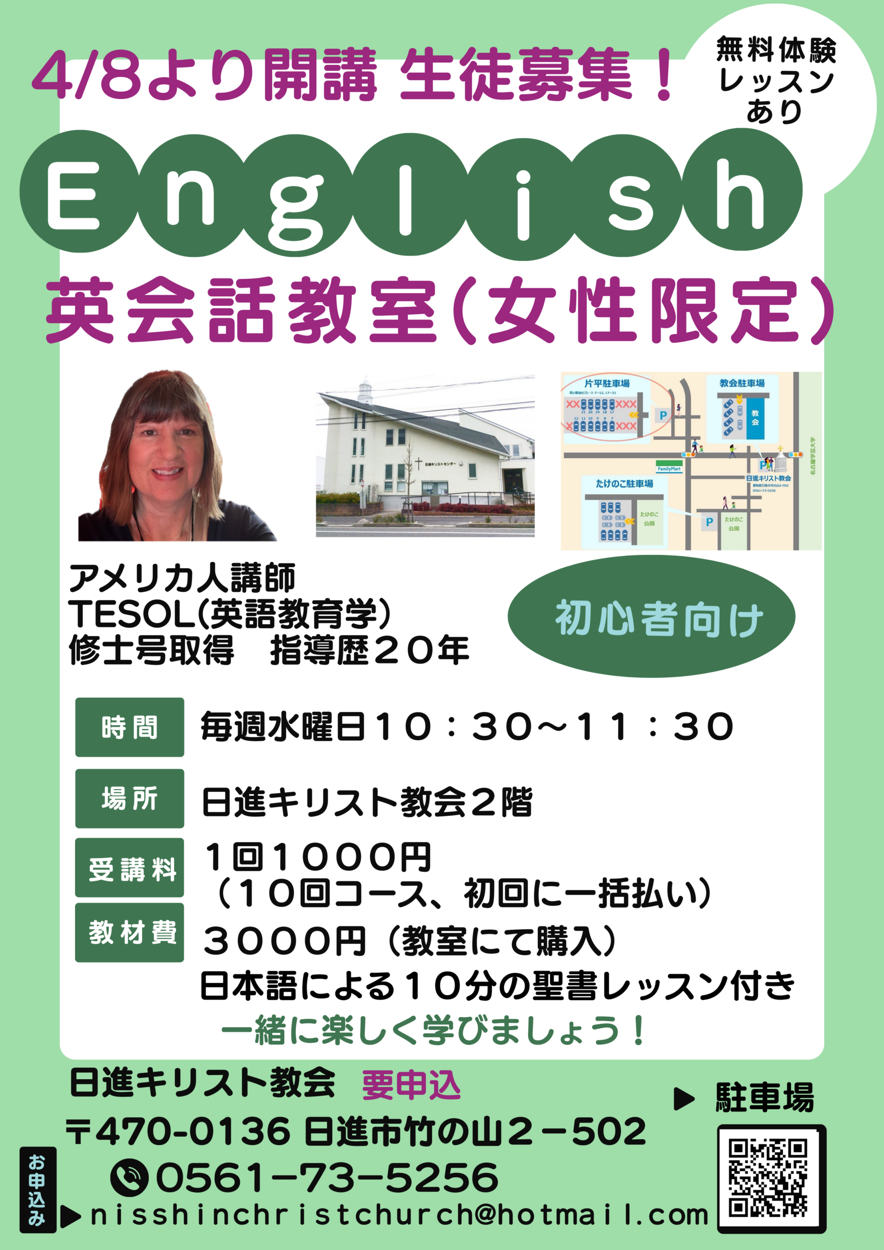 私たちの英会話教室は、1988年に、地域のみなさんにフレンドリーな雰囲気のなかで楽しく英語を学んでほしいとの思いで、長久手で始まりました。教師はみな、英語を母国語とする人たちで、英語と生徒のみなさんが大好きです。場所は何度か変更をしましたが、英語と生徒の方々を愛し、楽しい時間を提供し、英語を学ぶ、話す最善な環境を目指す理念は変わっていません。 しばらくとお休み期間を経て、この度、再開できることを嬉しく思います。
